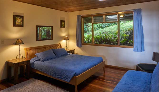 Our charming vacation rental home is not on the hotel grounds but on our small organic farm in the rural area of Cañita, 2 miles from the center of Santa Elena. It is close to the Santa Elena Cloud Forest Reserve. The 7.5 hectare property is reforested and great for wildlife and bird watching. From the balcony you have beautiful views of the Gulf of Nicoya and sunsets.